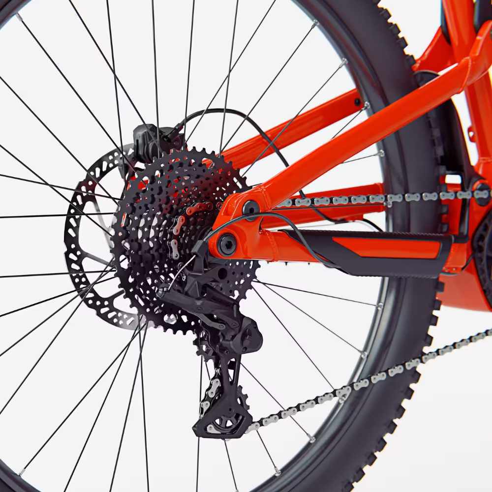 Le freinage repose sur des étriers hydrauliques Tektro M276 à deux pistons, associés à des disques de 203 mm à l'avant comme à l'arrière, fixés en 6 trous. Cette configuration offre une puissance de freinage adéquate pour une utilisation orientée randonnée et moyenne montagne. Les pilotes qui s’adonnent régulièrement à la descente à grande vitesse pourraient trouver ce système un peu insuffisant. Heureusement, le E-EXPL 700 S offre un étrier avant à quatre pistons pour une meilleure adhérence.